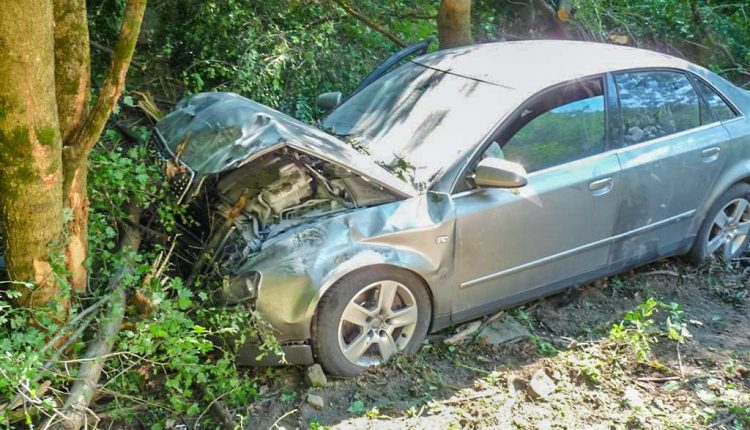 FOTO: Audi vyletelo mimo cestu, zranili sa tri osoby