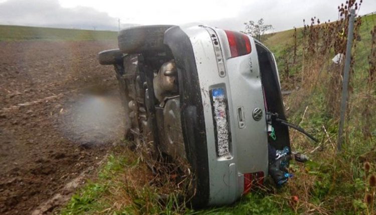 Havarovaný automobil prerazil ochranný plot diaľnice a následne zostal uviaznutý, prevrátený na boku, mimo vozovky. Vodič sa bez zranení nachádzal mimo postihnutého vozidla.