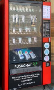Rúškomat je predajný automat, ktorý umožňuje si jednoducho zakúpiť ochranné prostriedky na boj proti ochoreniu COVID-19. Od jeho spustenia v ňom nájdete kvalitné trojvrstvové rúška, praktickú vreckovú dezinfekciu, latexové rukavice a tiež dva druhy dezinfekčných vlhčených obrúskov.