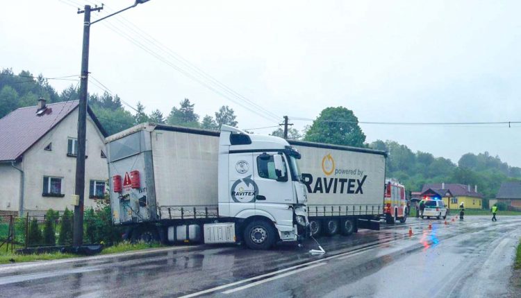Kamión skončil mimo cestu, vyťahoval ho traktor