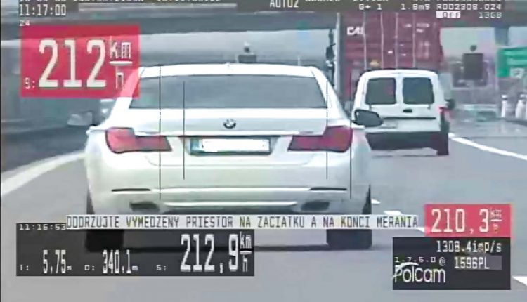 Trenčianski diaľniční policajti vo štvrtok 5. apríla 2018 dopoludnia namerali 46- ročného Mariána, vodiča BMW 7 rada, ktorý prekročil maximálnu povolenú rýchlosť na diaľnici o 82 km/hod a jazdil rýchlosťou cez 212 km/hodinu.