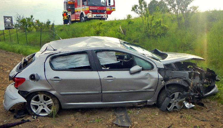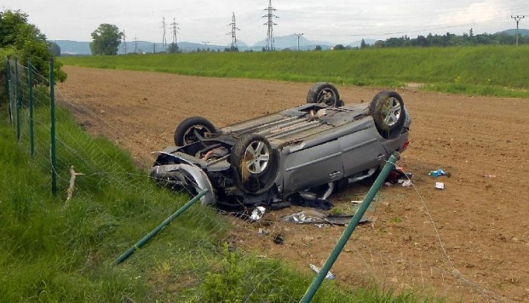 Nehoda na diaľnici, auto vyletelo do poľa a skončilo na streche