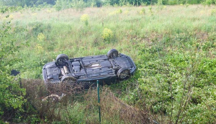 Nehoda na diaľnici, vozidlo skončilo na streche