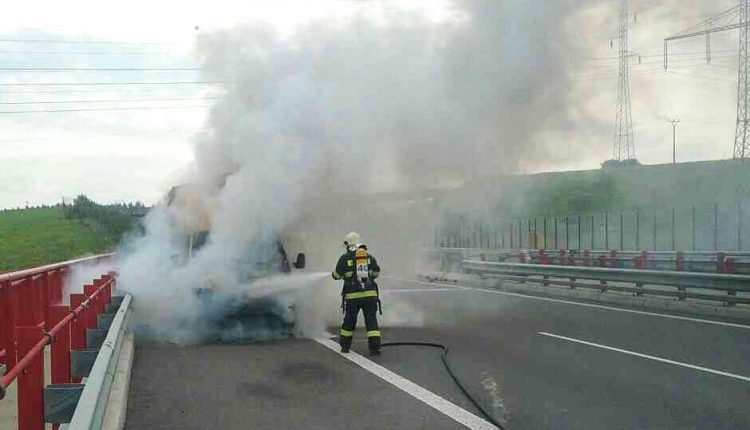 Požiar dodávky na diaľnici D1 pri Považskej Bystrici