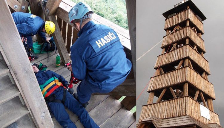 Púchovskí hasiči cvičili na vyhliadkovej rozhľadni