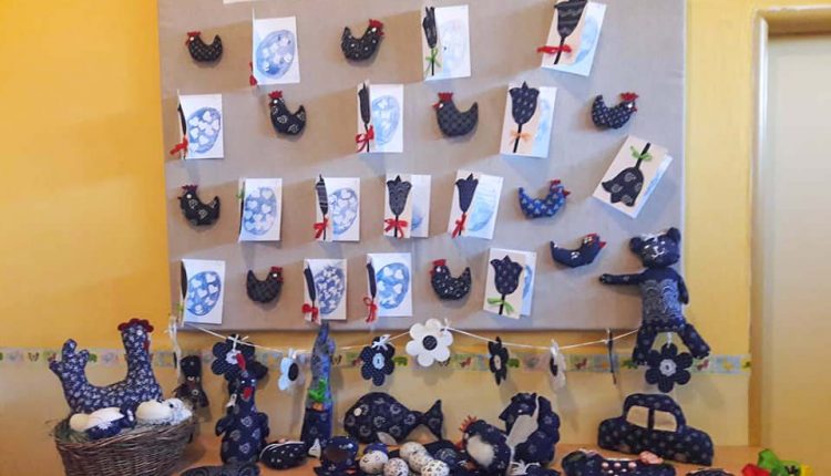 Projekt prebiehal tak, že v materskej škole sme prichystali materiál – modrotlač a výplň, ktorý si rodičia mohli zobrať domov. Doma počas celého týždňa, v spolupráci so svojimi deťmi, vytvárali buď veľkonočné dekorácie, alebo hračky. Milo nás prekvapil záujem mamičiek a chuť, s akou sa pustili do práce. To sa samozrejme odrazilo aj na výslednom efekte. V niektorých rodinách sa zapojili aj babičky alebo súrodenci. Výsledkom toho je veľa dekorácií a hračiek, ktoré sú umiestnené na výstave v škôlke. Výsledné dielka sú naozaj pekné a milé. Macíkovia, koník, zajkovia, vtáčiky.